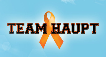 While breast cancer and the Susan G. Komen Foundation have made pink the synonymous color for breast cancer, the adopted color for marrow transplant patients is bright orange. Here Team Haupt incorporated the orange ribbon into their logo design.